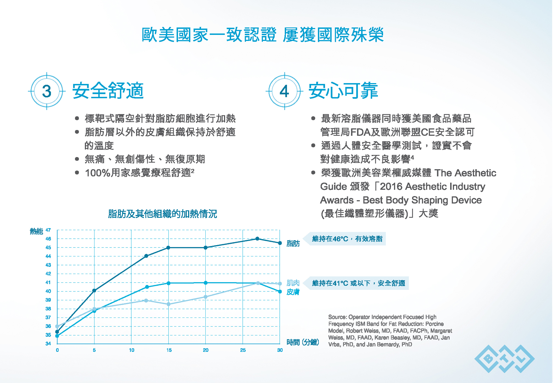 而無損表層皮膚、肌肉和脂肪以外的組織。治療期間儀器更無需接觸身體,