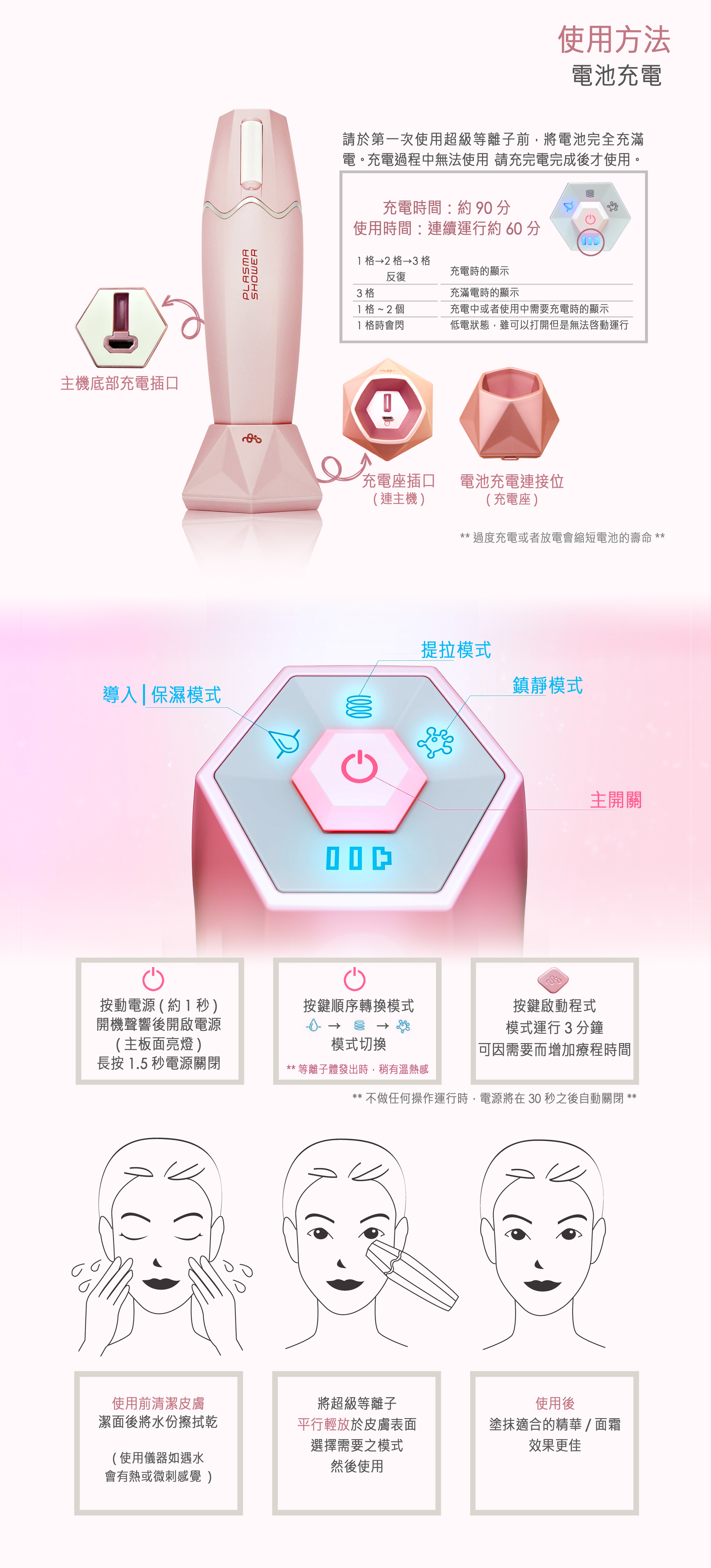 Plasma shower (超級等離子) 3種全面修護肌膚模式