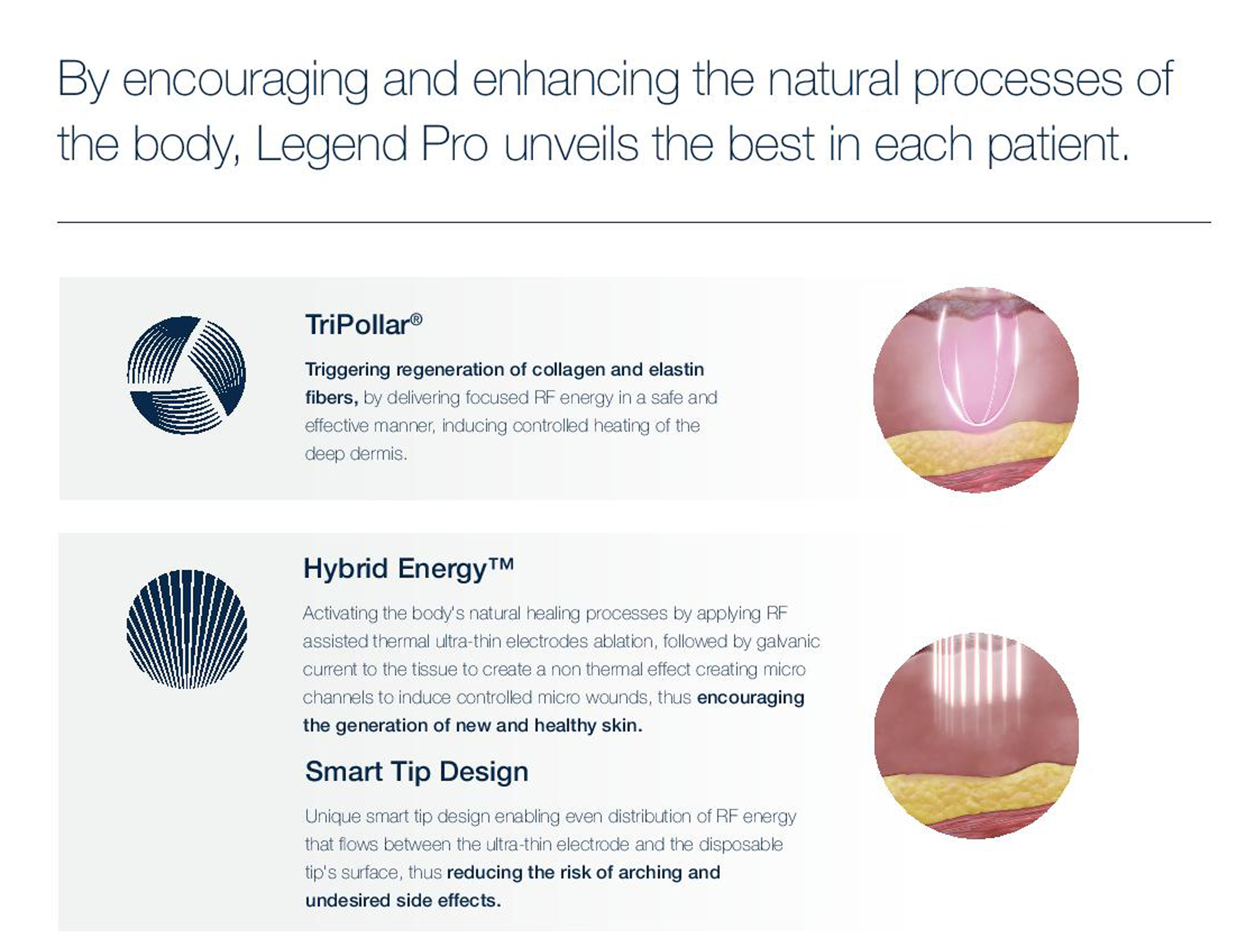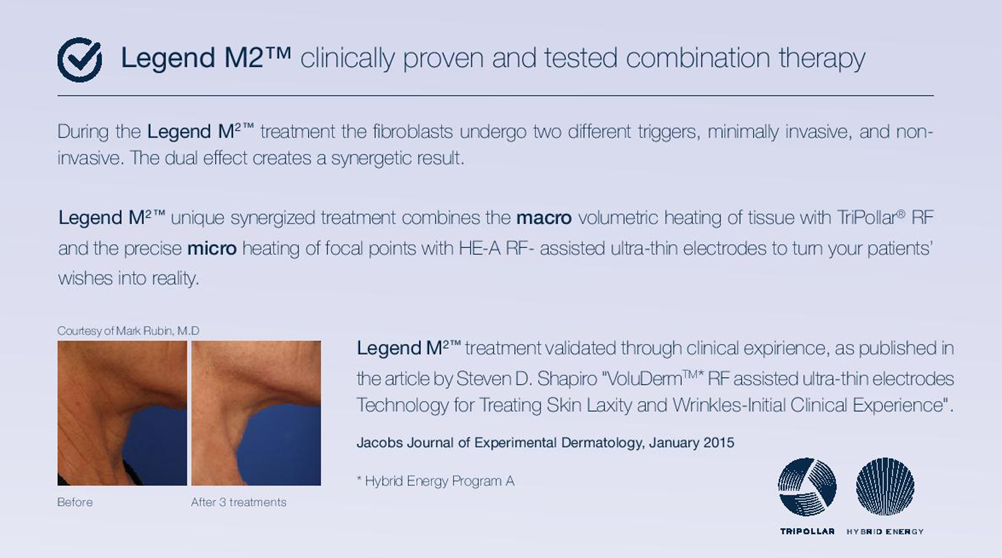 Legend M2TM unique synergized treatment combines the macro volumetric heating of tissue with TriPollar® RF