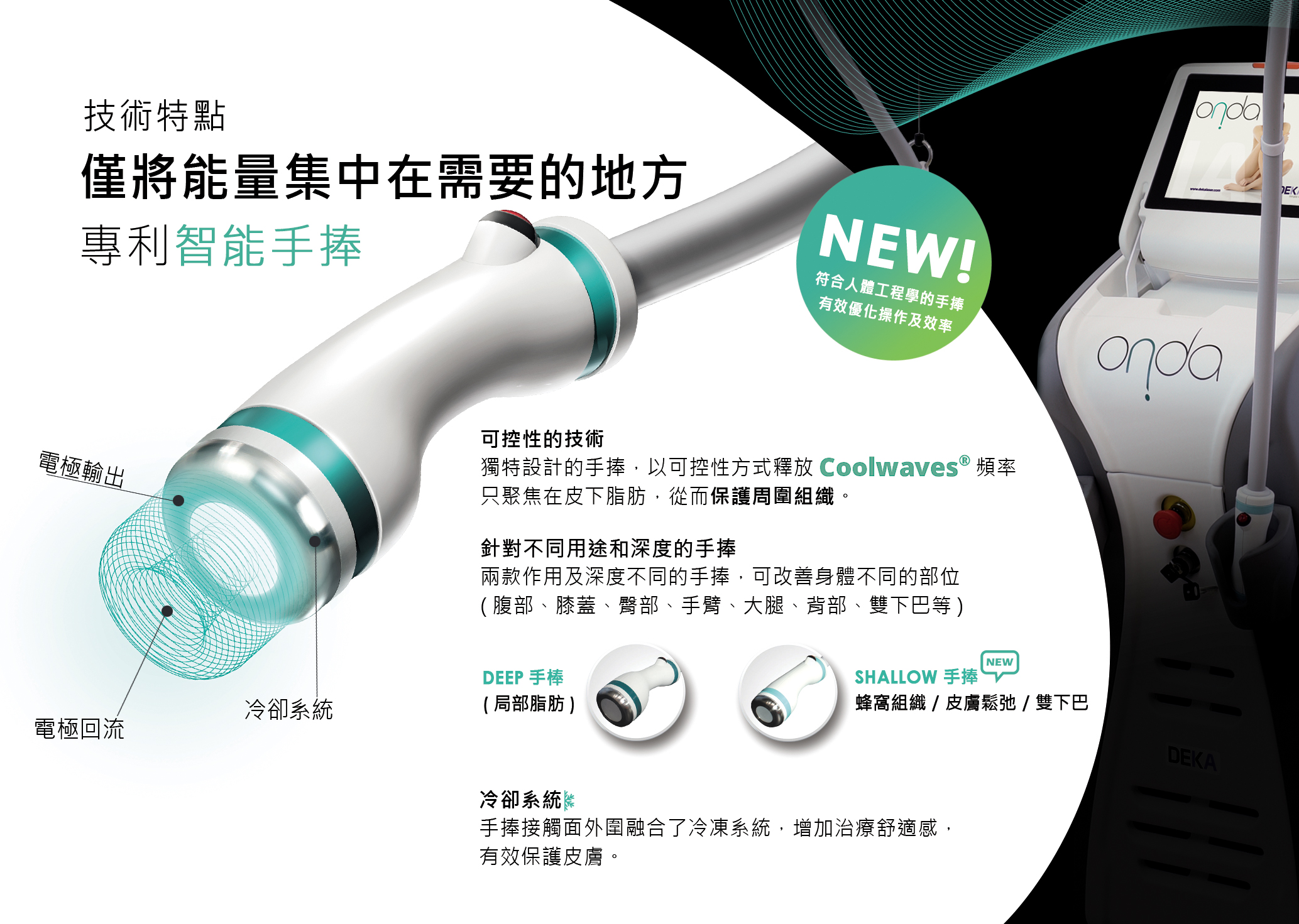 獨特專利技術COOLWAVES能選擇性地靶向脂肪細胞,深入至15mm 的皮下脂肪,