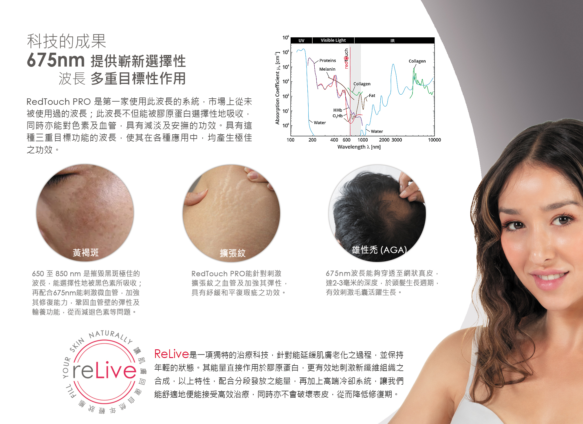 ReLive是一項獨特的治療科技,針對能延緩肌膚老化之過程,並保持年輕的狀態,