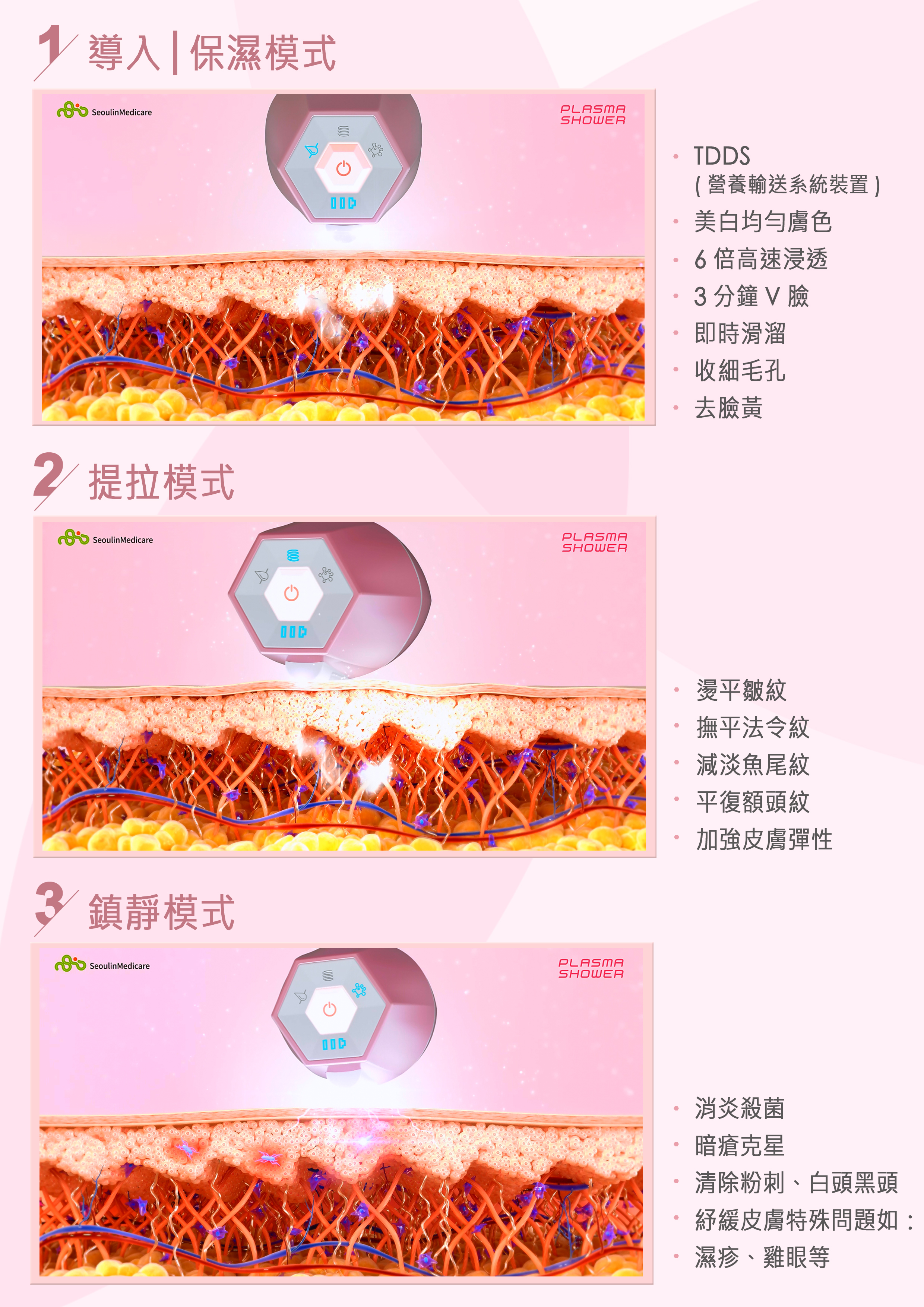 Plasma shower (超級等離子) 3種全面修護肌膚模式
