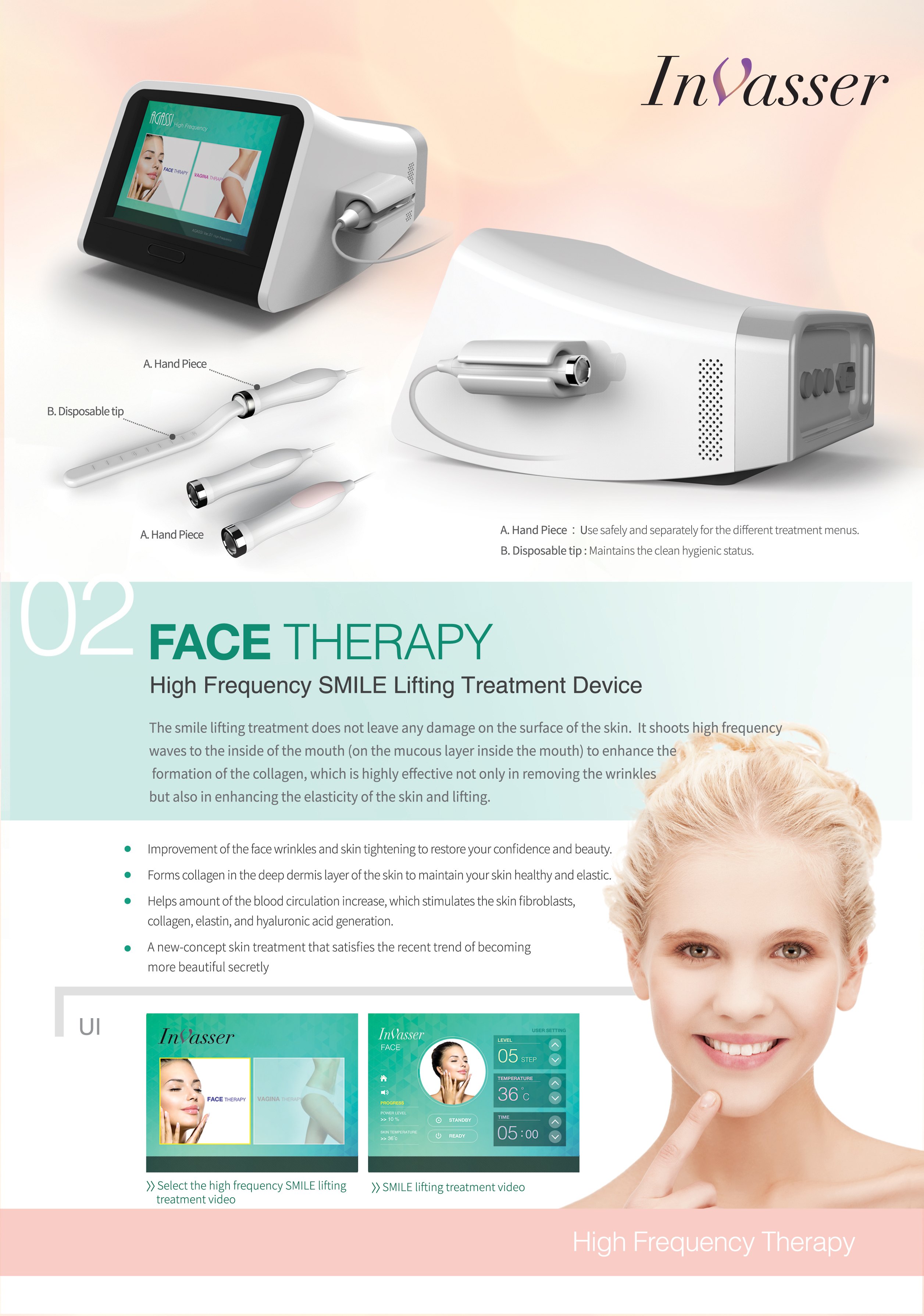 The smile lifting treatment does not leave any damage on the surface of the skin. It shoots high frequency waves to the inside of the mouth (on the mucous layer inside the mouth) to enhance the formation of the collagen, which is highly effective not only in removing the wrinkles but also in enhancing the elasticity of the skin and lifting.