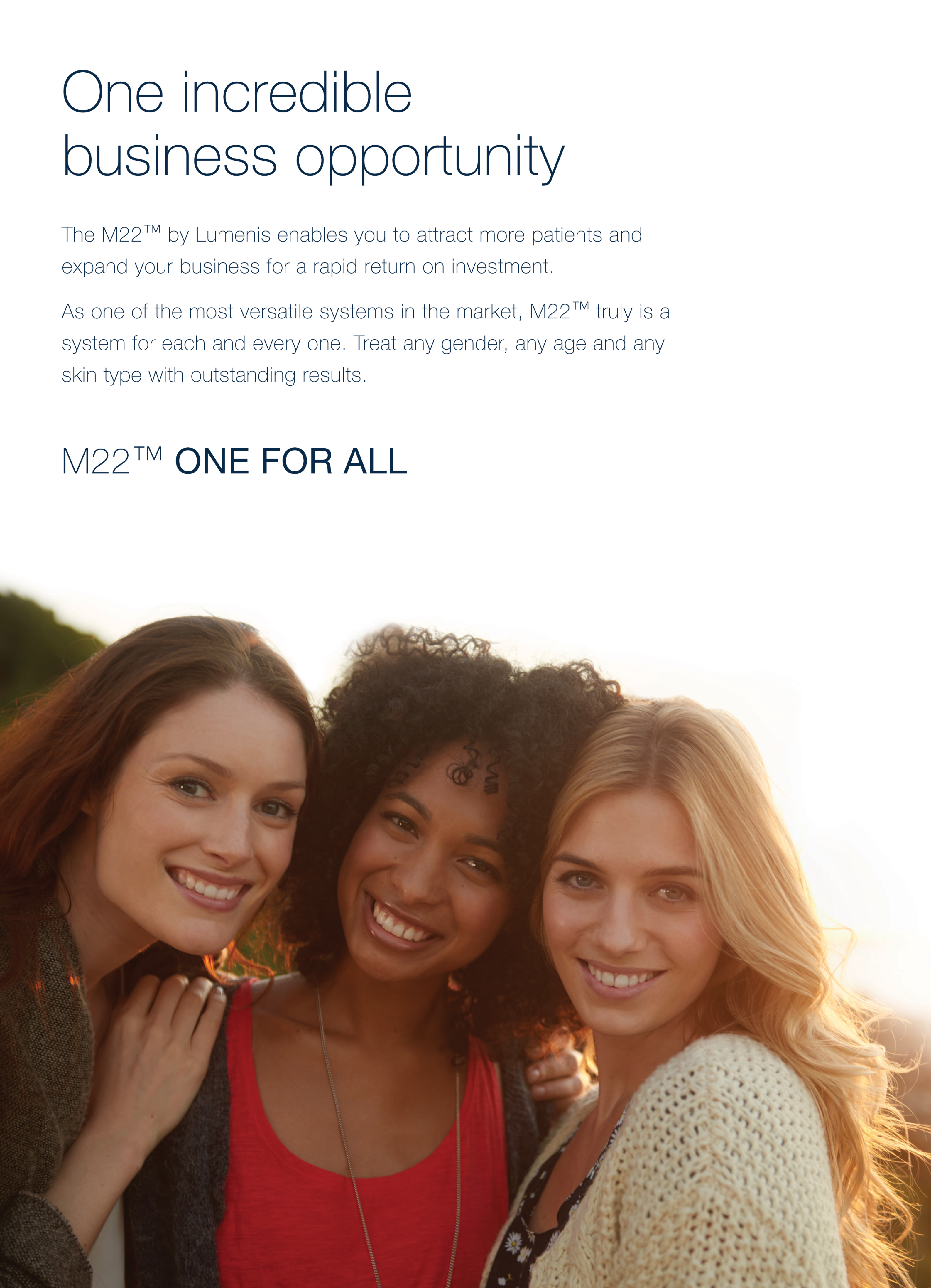 The M22 by Lumenis enables you to attract more patients and expand your business for a rapid return on investment.