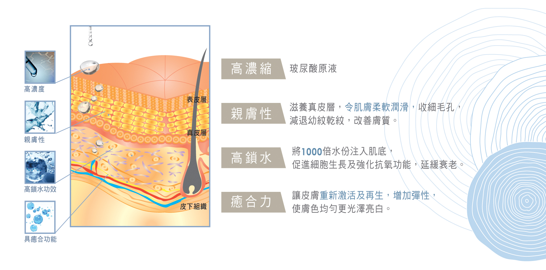 高鎖水 │ 將1000倍水份注入肌底,促進細胞生長及強化抗氧功能,延緩衰老。