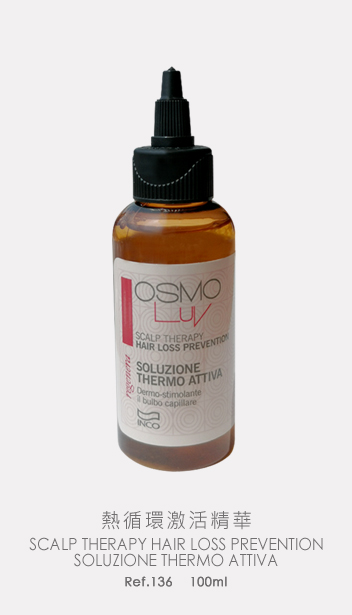 熱循環激活精華─刺激真皮層毛囊,熱激活刺激可以使皮膚正常代謝,從而令頭髮的生命週期正常化。礦物質鹽和維生素B6,E和C發揮抗氧化功能,透過活躍血液循環,可提供毛囊再生時所需營養。