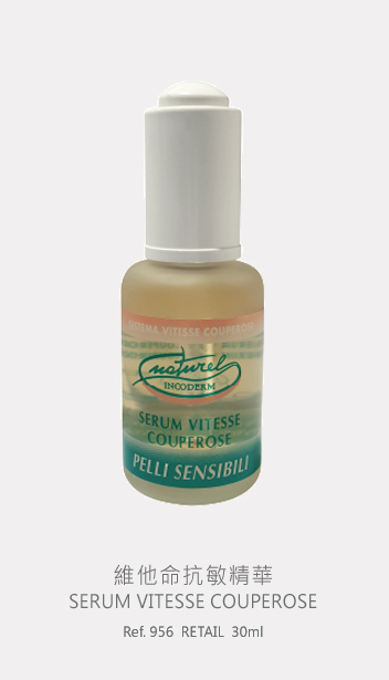 維他命抗敏精華針對容易敏感皮膚,其主要成份中的高濃度維生素C及藍莓提萃物,能增強毛細結構,幫助改善血液微循環及減退紅腫。