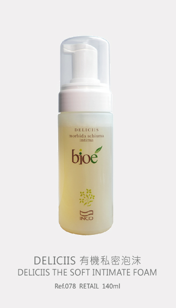 DELICIIS 有機私密泡沫其溫和泡沫能清爽地潔淨女性敏感隱秘部位,維持女性部位的天然PH值,洋甘菊水基有機提取物能有效舒緩敏感部位痕癢,能去除異味,賦予女性真正的快樂。