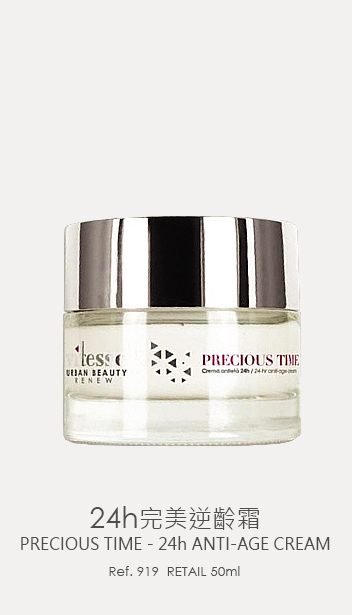 24H 完美逆齡霜從內激活細胞,強效修復受衰老過程之影響,包括膚色、缺水、紋理等。勝肽複合物高效增加膠原蛋白產生;透明質酸透過水合作用,有效鎖水保濕,撫平皺紋。