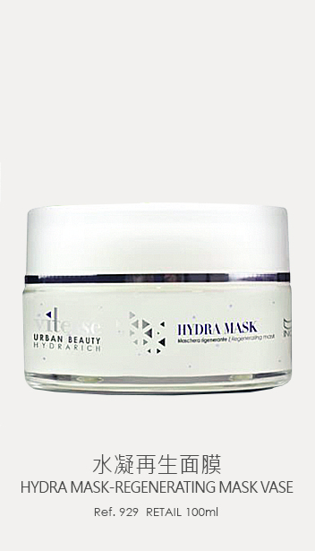 水凝再生面膜集多種不同的活性成份所組成的生物份子薄膜,提供充足養份保持角質層水份,同時防止表皮底層水份流失,維持水份平衡以對抗游離基,為肌膚築起防護罩防止污染物的傷害。