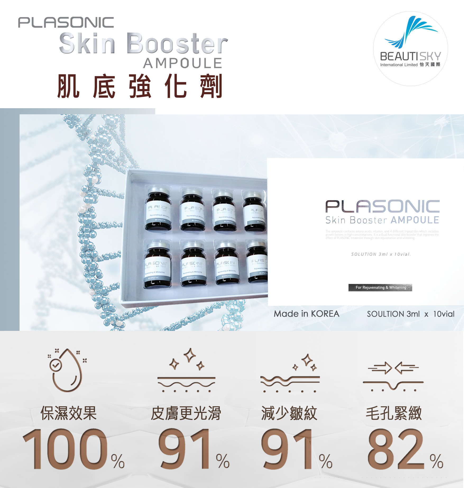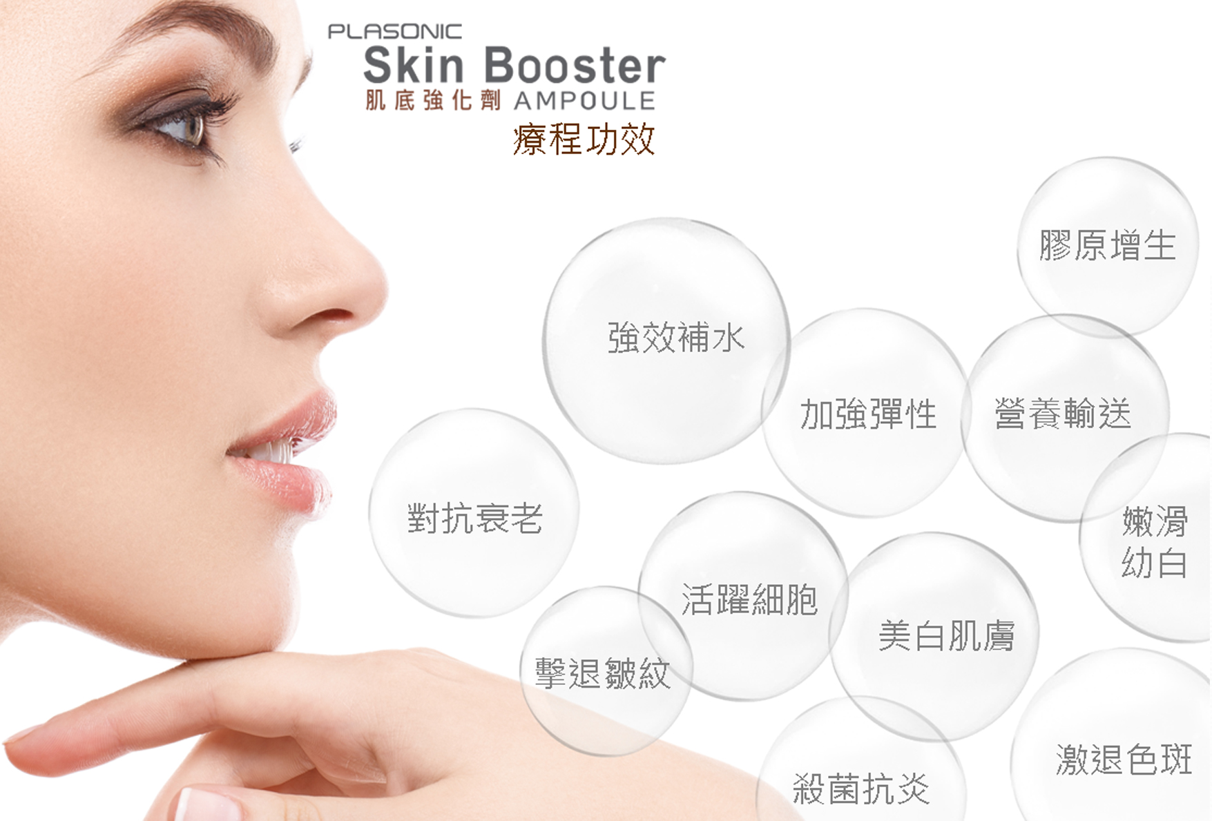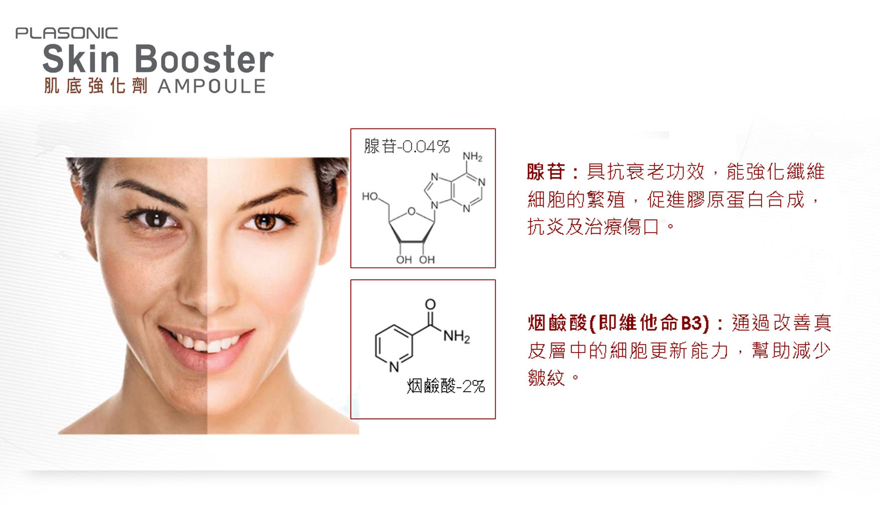 【Skin Booster Ampoule 肌底強化劑】具有34種活性成份配合透明質酸,以最佳成份比例研製而成,